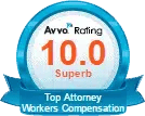 Avvo Top Attorney in Workers Compensation—Avvo is a review site that allows former clients to review and rate their attorney’s performance. The following award is for workers’ compensation.